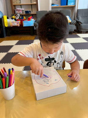 夏ならではの、水遊びや制作をしながら、音や感覚を五感でたっぷり感じながら、刺激を受け楽しく活動できました!!汗をかいた後はしっかり水分補給もして、たくさん食べて、体調を崩すことなく元気に過ごすことができました。