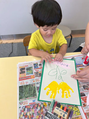 手形を取るやマーカーで葉や茎を描くことも楽しくおこなえていましたよ💕