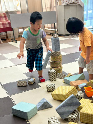 「駅つくろー」「いいねー」等お友だちとの関わりも増えてきて成長を感じる日々です☆