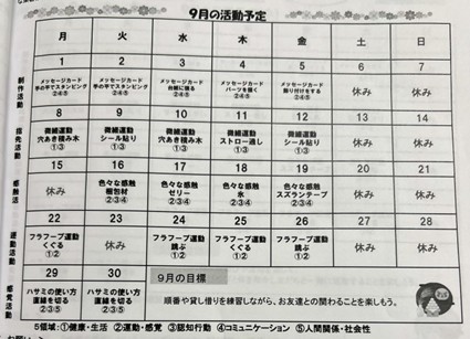 制作活動では、敬老の日に向けて大好きなおじいちゃんおばあちゃんにメッセージカードを作りました(^O^)/